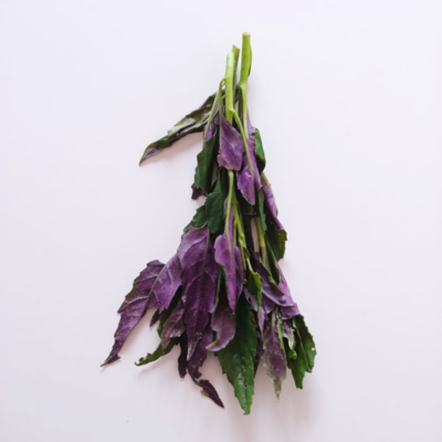 和名は「スイゼンジナ」で九州の水前寺に由来するといわれ、 石川県の加賀野菜のひとつ「金時草」と同じものです。 沖縄では中国や台湾から伝わり、 昔からよく食べられていました。 表が緑、裏が紫色(裏も緑の品種もある)をしていて、 茎から葉っぱをちぎって、葉っぱだけを使います。 生でサラダなどに彩りとして加えてもいいし、 茹でておひたしにしたり、炒め物に入れたりしてもおいしいです。 加熱すると、ぬめりが出て、海藻みたいな食感に。 白和えやごはんに混ぜると 紫色のキレイな色がいかせます。 紫色はアントシアニンによるもので、 強い抗酸化作用があり、眼精疲労に効果あり。 また、鉄分も多く含まれ、「血の薬」とも呼ばれています。