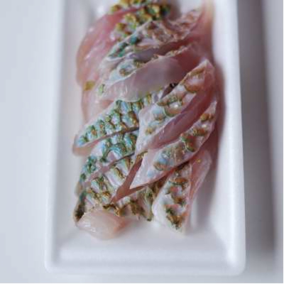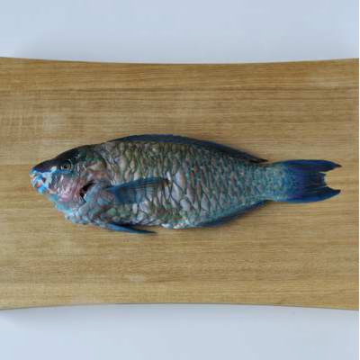 沖縄の市場や魚やさんでは、 内地では見かけないカラフルなお魚を見かけますが、 その中でひと際目をみはるブルーの魚がイラブチャー。 ブダイ科ハゲブダイ属のお魚です。 寝る時は、外敵などから身を守るため、 口やエラから粘液をだして寝袋を作るそう。 しかも、肝臓からはフグ毒のテトロドトキシンが検出 されることもあるとか。 ちょっとビックリな生態と見かけによらず、 中は白身でさっぱり淡白な味わい。 脂はのっていないけれど、 新鮮なものをお刺身にして酢みそをつけて食べると なかなか美味。