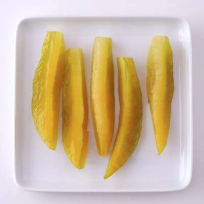 沖縄へは18世紀末頃に伝わってきたと言われる 沖縄の冬フルーツのひとつ。 サクサクの梨っぽい食感と、 さわやかで、あっさりさっぱり甘さ控えめ。 最近出てきた「美ら星」という品種は 適度な甘さと酸味でオススメです。 食べる時、えぐみのある角を切り落とし、 星形に輪切りにするか、縦に切ります。 皮ごと食べられます。 ウソみたいな話ですが、縦に切ると、 輪切りにするより、だいぶ甘くおいしく感じます。 サラダやピクルス、コンポートやケーキの飾りの他、 ポークランチョンミートやハム、 濃いめに味付けしたお肉類とも相性抜群!